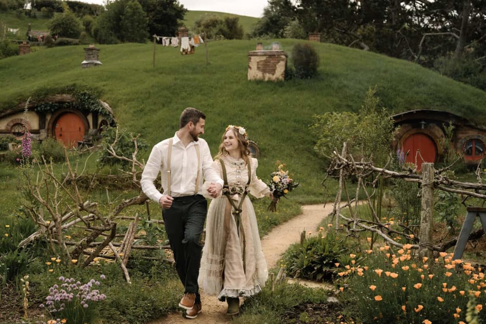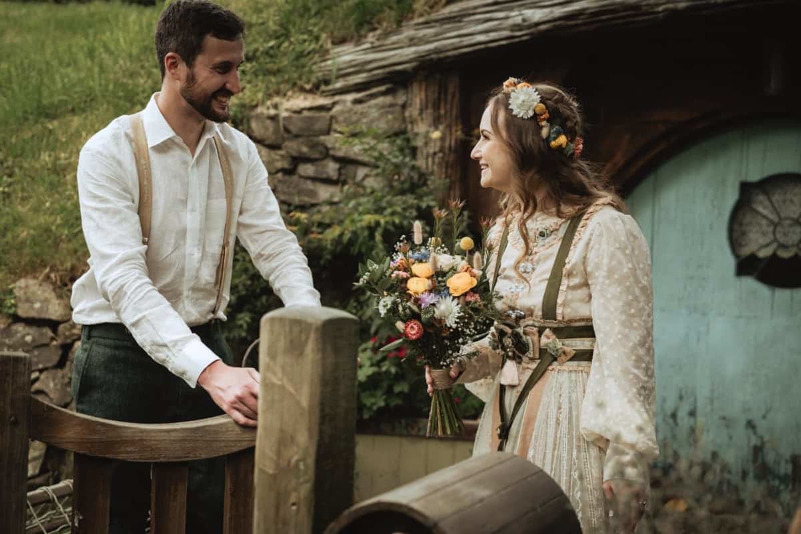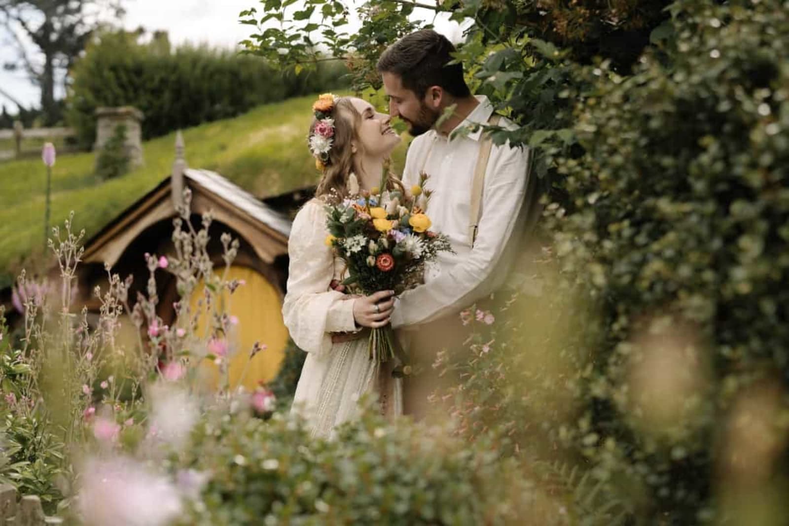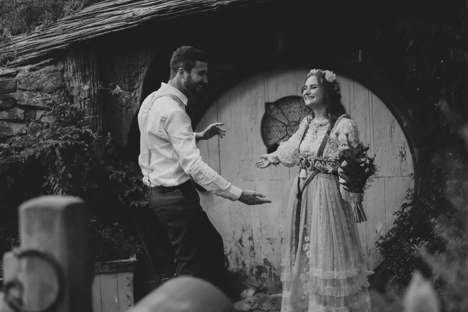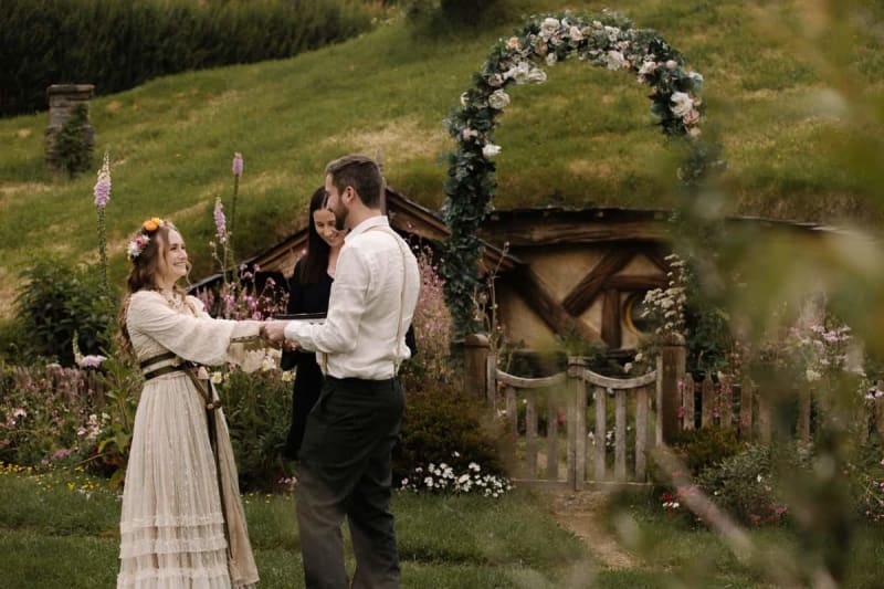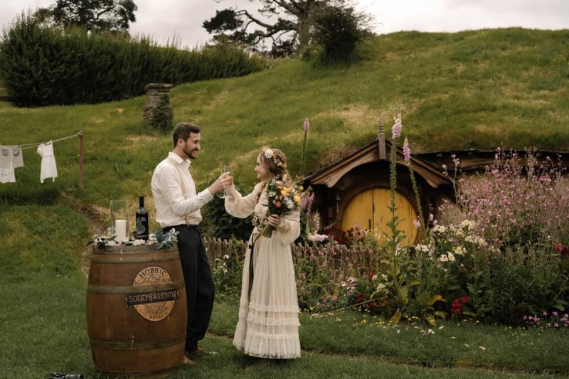 Set against the iconic Hobbit Holes and lush landscapes, Danielle and Nathan's wedding day was a perfect blend of romance and New Zealand's most magical film location. Traveling all the way from the United States, the couple chose the legendary Hobbiton Movie Set as their dream wedding destination. From the ceremony in the Shire at the Hobbiton Gardens to drinks at the Green Dragon Inn, every detail reflected their personalities and connection.